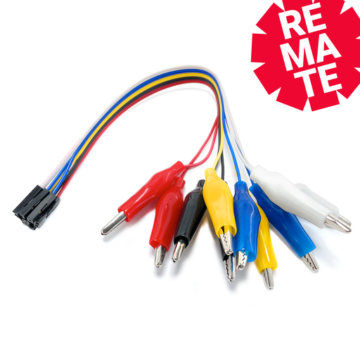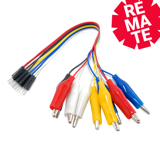 Este juego de cables jumper hembra a caimán es perfecto para experimentar con prototipos rápidos, ya que permite conectar y desconectar componentes fácilmente. Estos cables tienen un conector hembra en un extremo y en el otro una pinza caimán de 28 mm. Las pinzas caimán y los cables vienen en 5 colores distintos, lo que te será de gran ayuda para clasificar tus conexiones. El acabado de los protectores de los caimanes es gomoso, por lo que es cómodo trabajar con ellos.